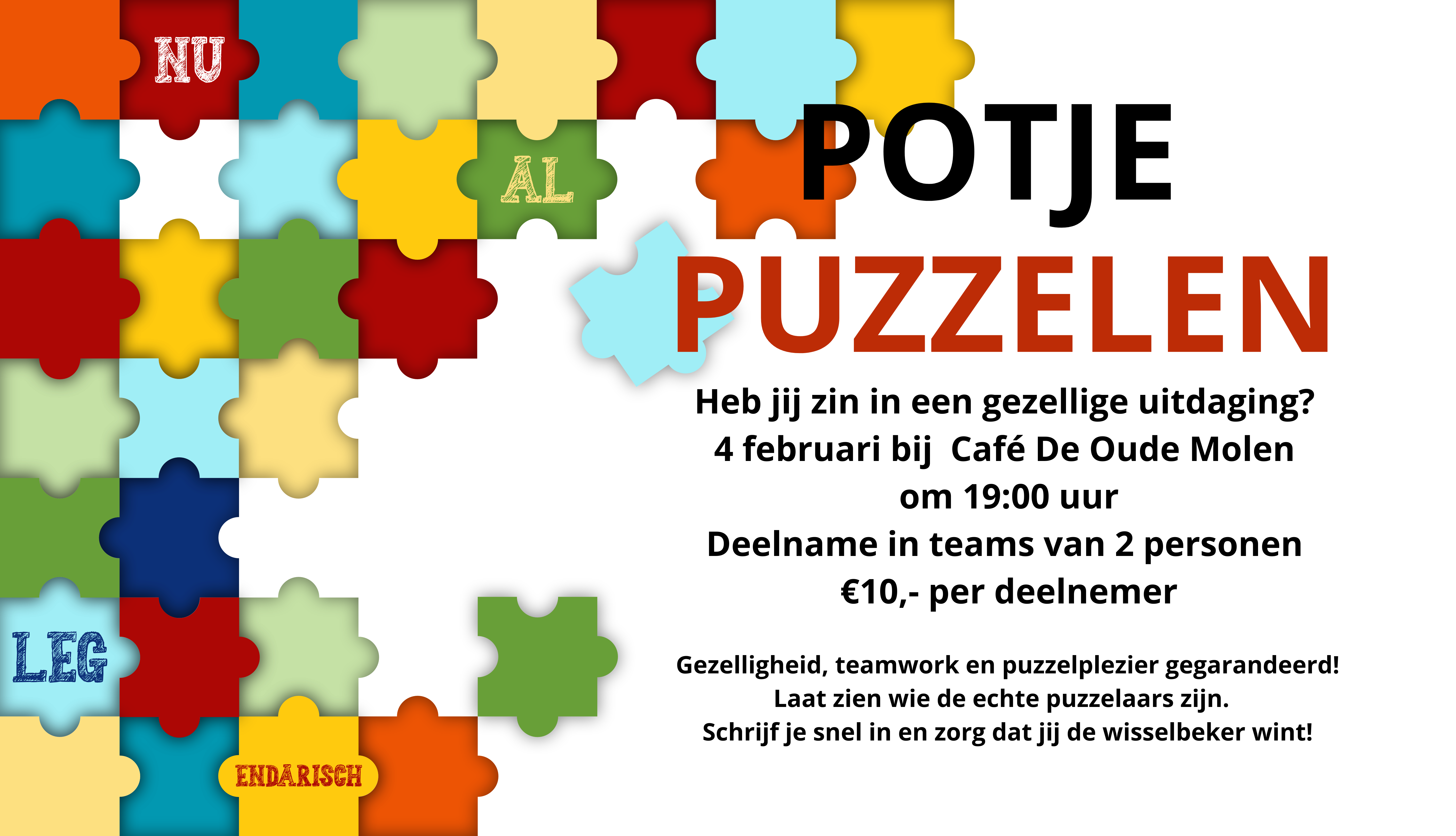Er doen maximaal 15 teams mee met deze tweede editie van Potje Puzzelen.